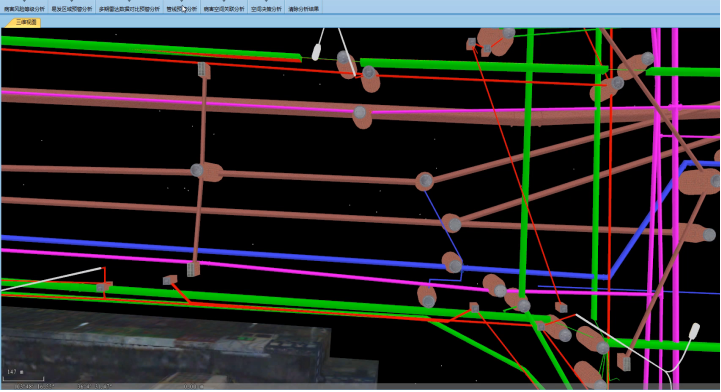 利用地理信息系统技术,综合风险发生可能性和风险后果严重程度,利用不同的风险评估模型,对地下管线、危害性地质异常体进行分析,得出地下开挖施工的危险区域、以及由危害性地质异常体造成的安全风险区域。