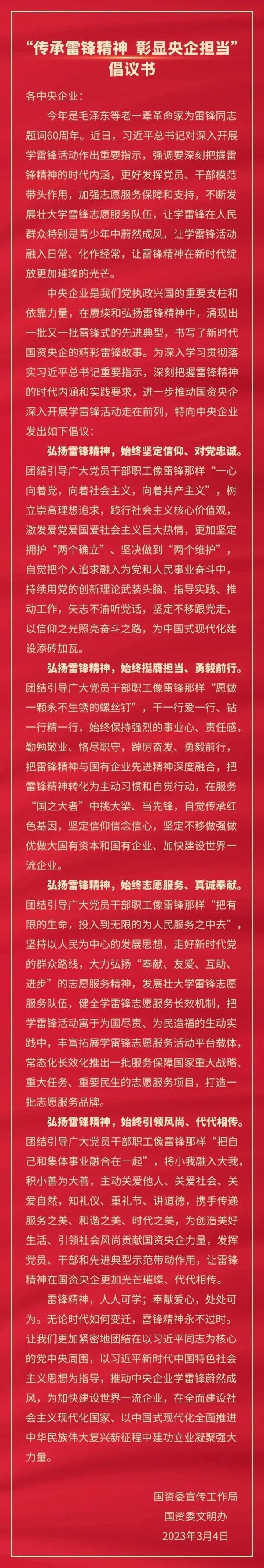 倡议 | 传承雷锋精神 彰显央企担当