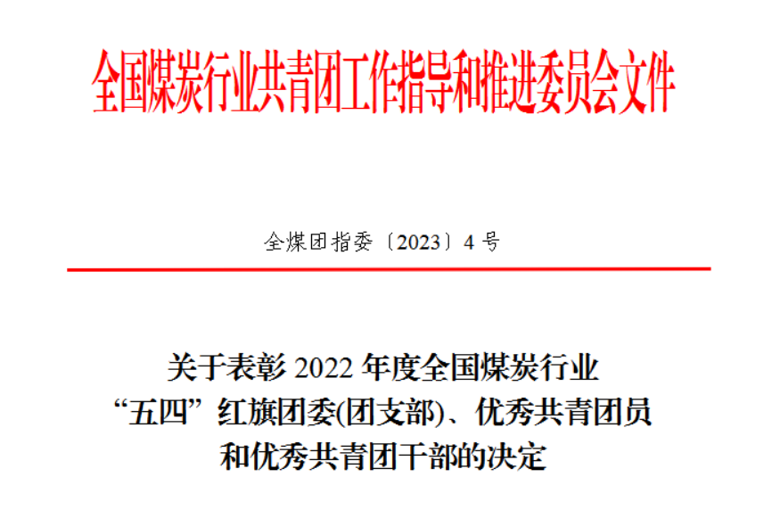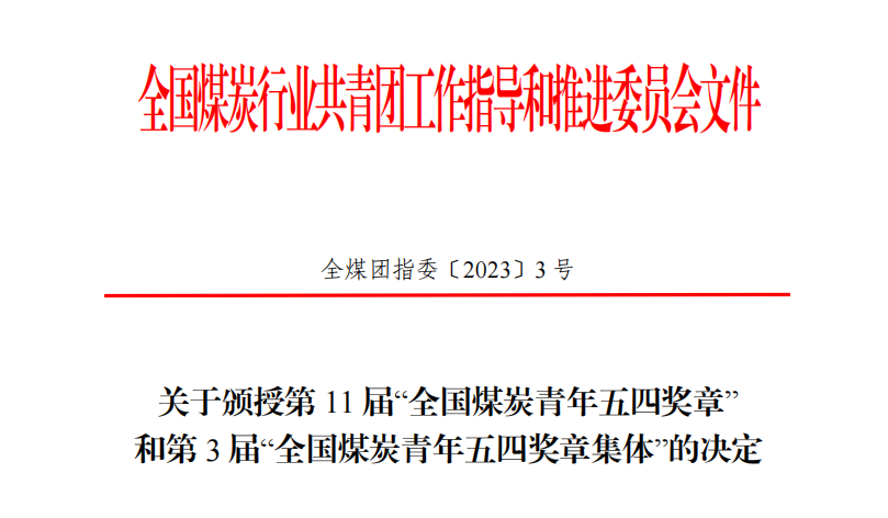 近日,全国煤炭行业共青团工作指导和推进委员会颁授了第11届“全国煤炭青年五四奖章”和第3届“全国煤炭青年五四奖章集体”,表彰了2022年度全国煤炭行业“五四”红旗团委(团支部)、优秀共青团员和优秀共青团干部,总局8集体、8个人获表彰。